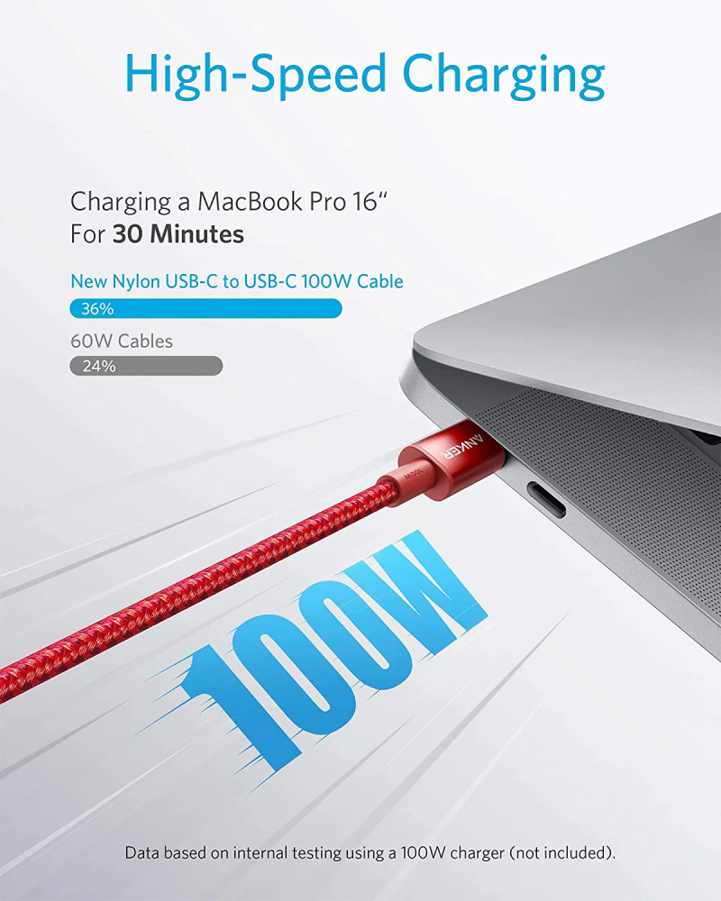 كابل Anker USB C 100 وات 10 قدم، كابل USB C جديد من النايلون إلى USB C 2.0، كابل شحن من النوع C شحن سريع لأجهزة MacBook Pro 2020، iPad Pro 2020، iPad Air 4، Galaxy S20، Pixel، Switch، LG