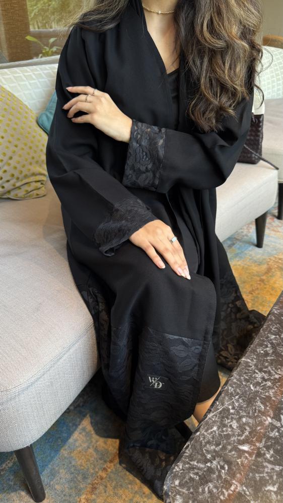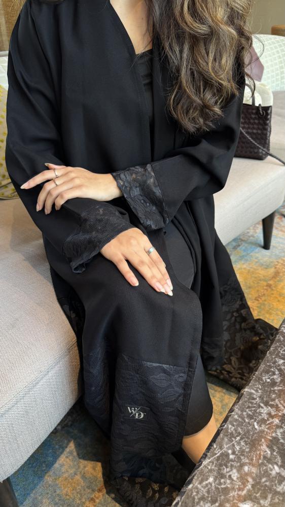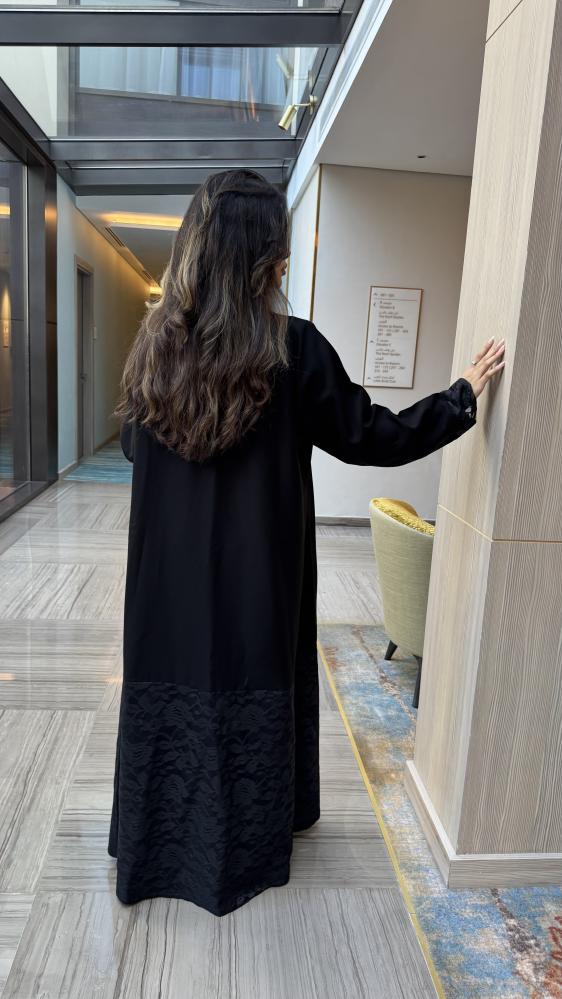 عبايه قماش ميني ميت نص كلوش مع طرحه طرف