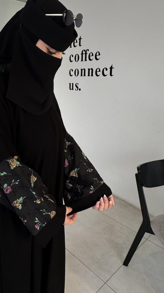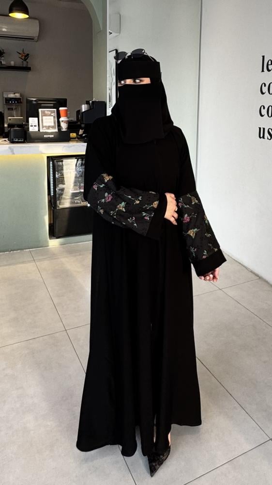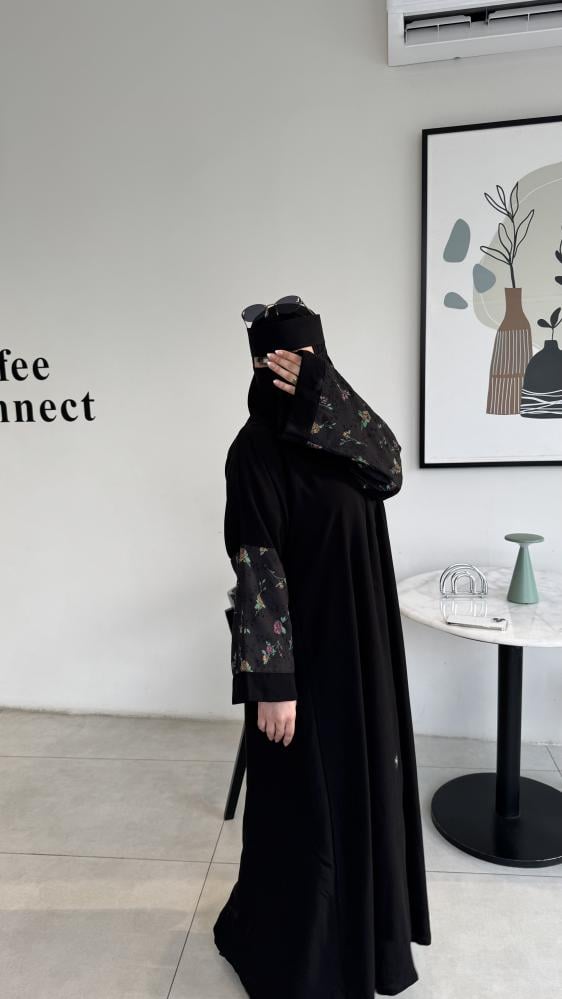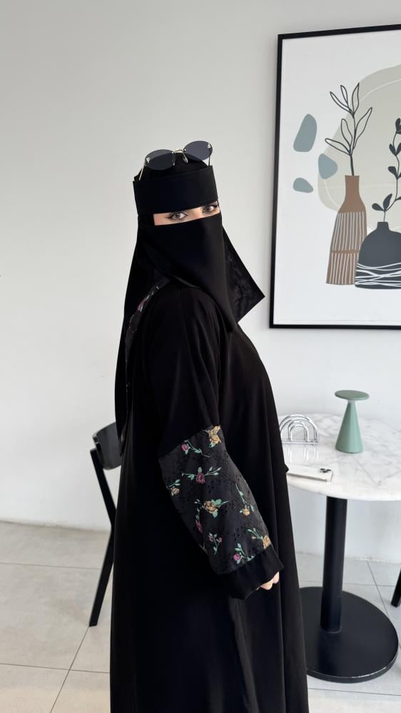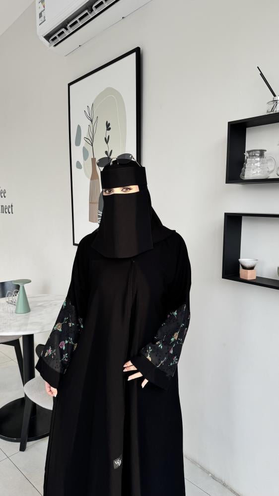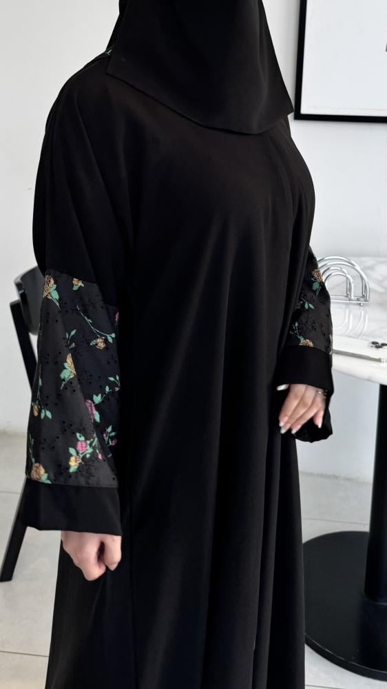 عبايه نص كلوش قماش ملكي مع طرحه طرف