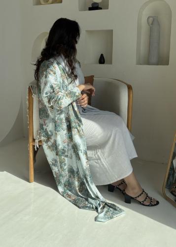 عباية بتصميم عصري مطبوع بنقشات زهرية وألوان دافئة متناسقة، تمنحك إطلالة أنيقة ومفعمة بالأنوثة. خفيفة ومريحة بفضل خامتها الانسيابية، مثالية للاستخدام اليومي والمناسبات البسيطة. يمكن تنسيقها بسهولة مع فستان أبيض أو إكسسوارات محايدة لإبراز جمال تفاصيلها.