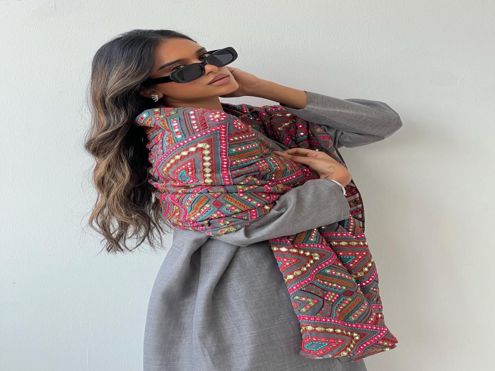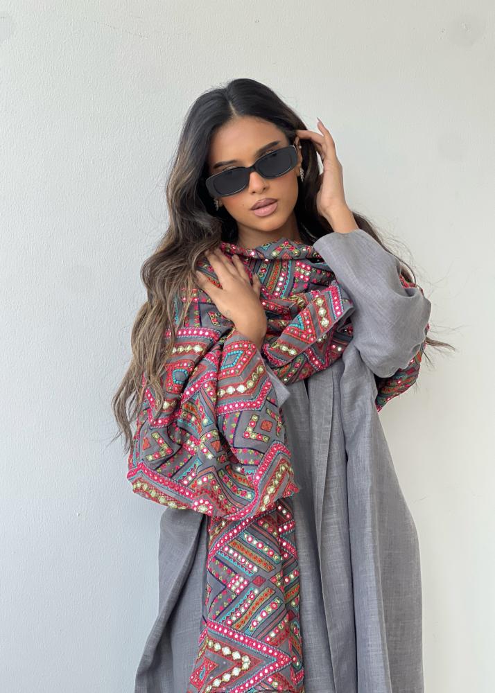 عباية يومية راقية من قماش اللينن بخفة وأناقة مريحة، اكتمل تفرّدها بطرحة من جورجيت هندي فاخر، قماش مستورد بعناية من الهند ليضفي لمسة فنية مميزة.
