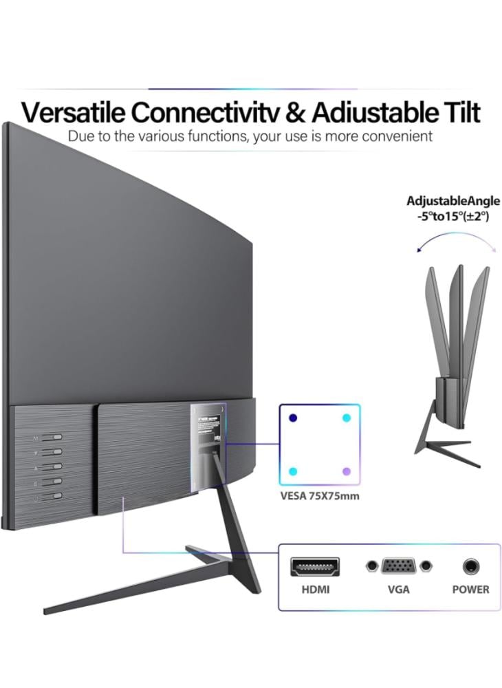 شاشة كمبيوتر 24 بوصة FHD بمعدل تحديث 100 هرتز ودقة وضوح 1080P، شاشة ألعاب وكمبيوتر رفيعة للغاية بدون إطار للمكتب والمنزل مع منافذ HDMI VGA (مكبر صوت مدمج) من جاوفوك