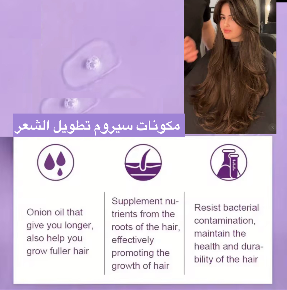 - 💧 تحفيز نمو الشعر بشكل ملحوظ بفضل خلاصة البصل الأحمر الغنية بالكبريت.