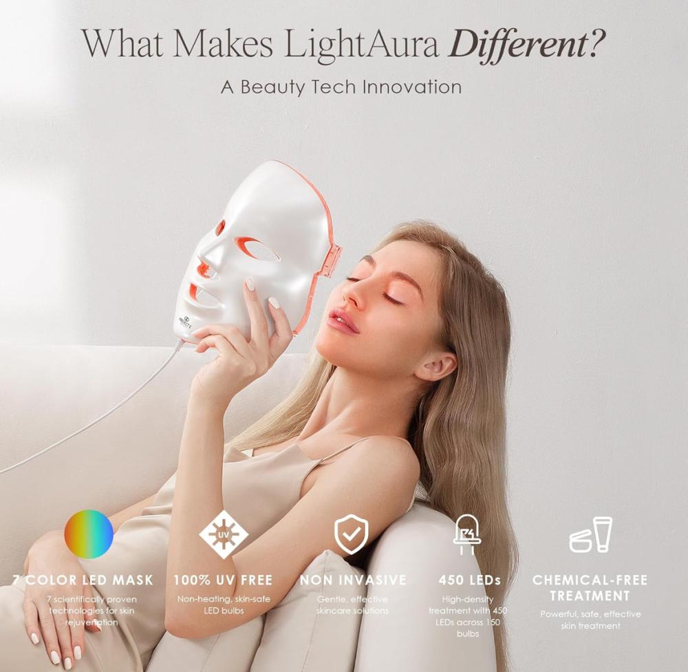 🔅 تصميم آمن للبشرة: ينقل قناع العلاج بضوء LED موجات الضوء الطبيعي الذي تنشط المستقبلات الضوئية في خلايا الجلد لتجميل بشرتك. وصُنع قناع العناية بالبشرة هذا من 150 مصباح LED بضوء الأشعة فوق البنفسجية.