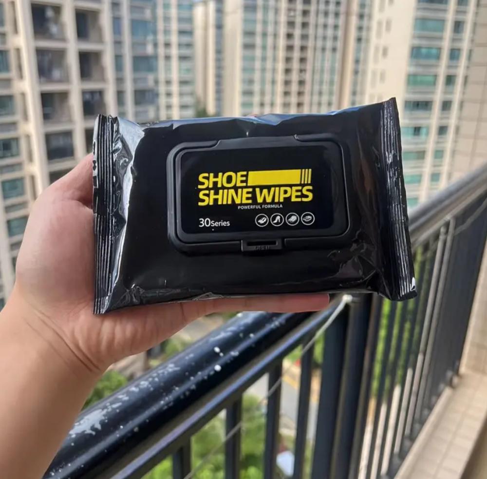 عبوة تحتوي على ٣٠ حبة مناديل مبللة تنظف الأحذية بسرعة و سهولة مثالية للاستخدام اليومي ويمكن حملها في الحقيبة أو السيارة .