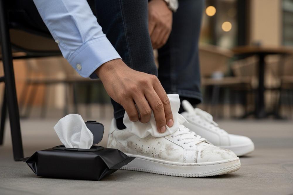 - امسح الاوساخ عن الحذاء بحركة دائرية