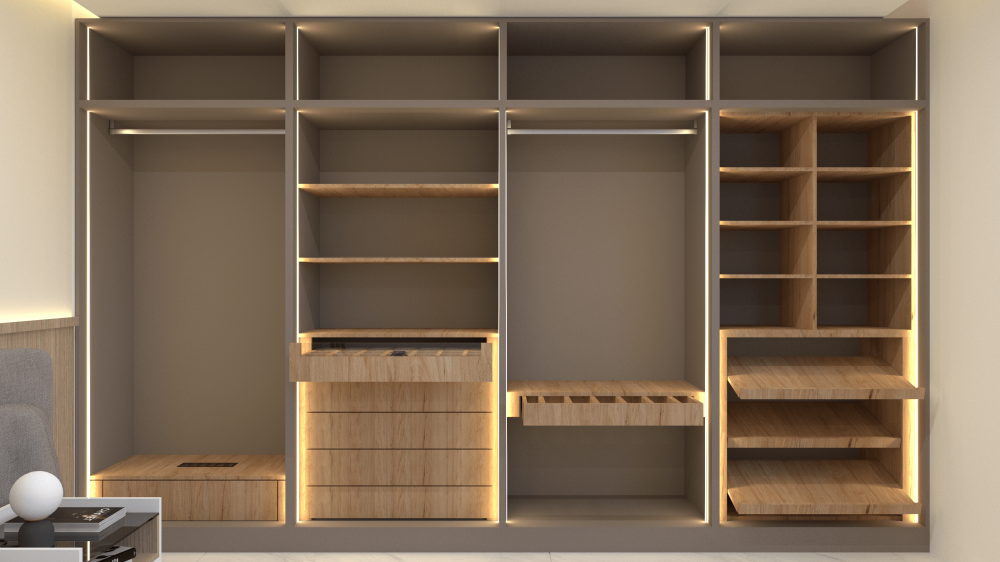 خـزانــة مــلابس عصـرية بتصميـم أنيـق يجمـع بين العمـلية والفخـامة، تتميـز بتقسيـم ذكـي يـوفـر أقصـى استفـادة مـن المسـاحة مع لمسـة جمـالية راقيـة, خيارات مرنة لتناسب احتياجك, مصنوعة بخامات مختارة لضمان القوة والاستدامة.، باستخدام خشب الشيبـورد الأوروبـي المقاوم للخدش او خشب تايلندي MDF وأفضل المفصلات والسحابات, أثاثـك معنـا أكثـر مـن مجـرد خشـب… هـو ذكريـات تـدوم.