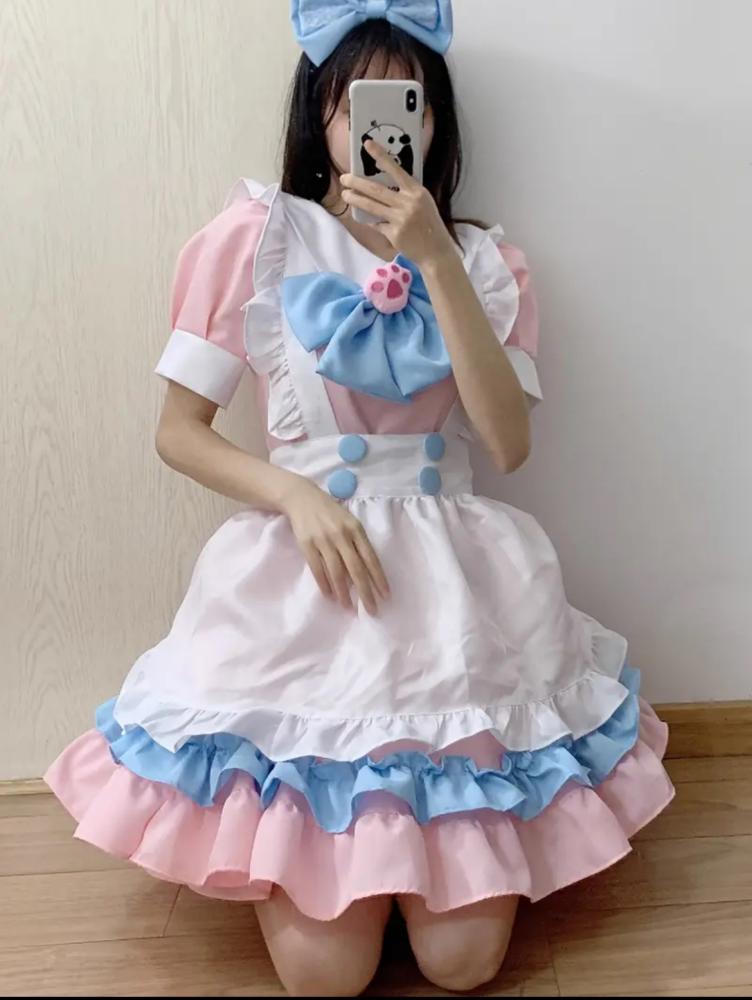 فستان كوسبلاي خادمة أنمي وردي سماوي – إطلالة لطيفة لمحبي الأزياء اليابانية