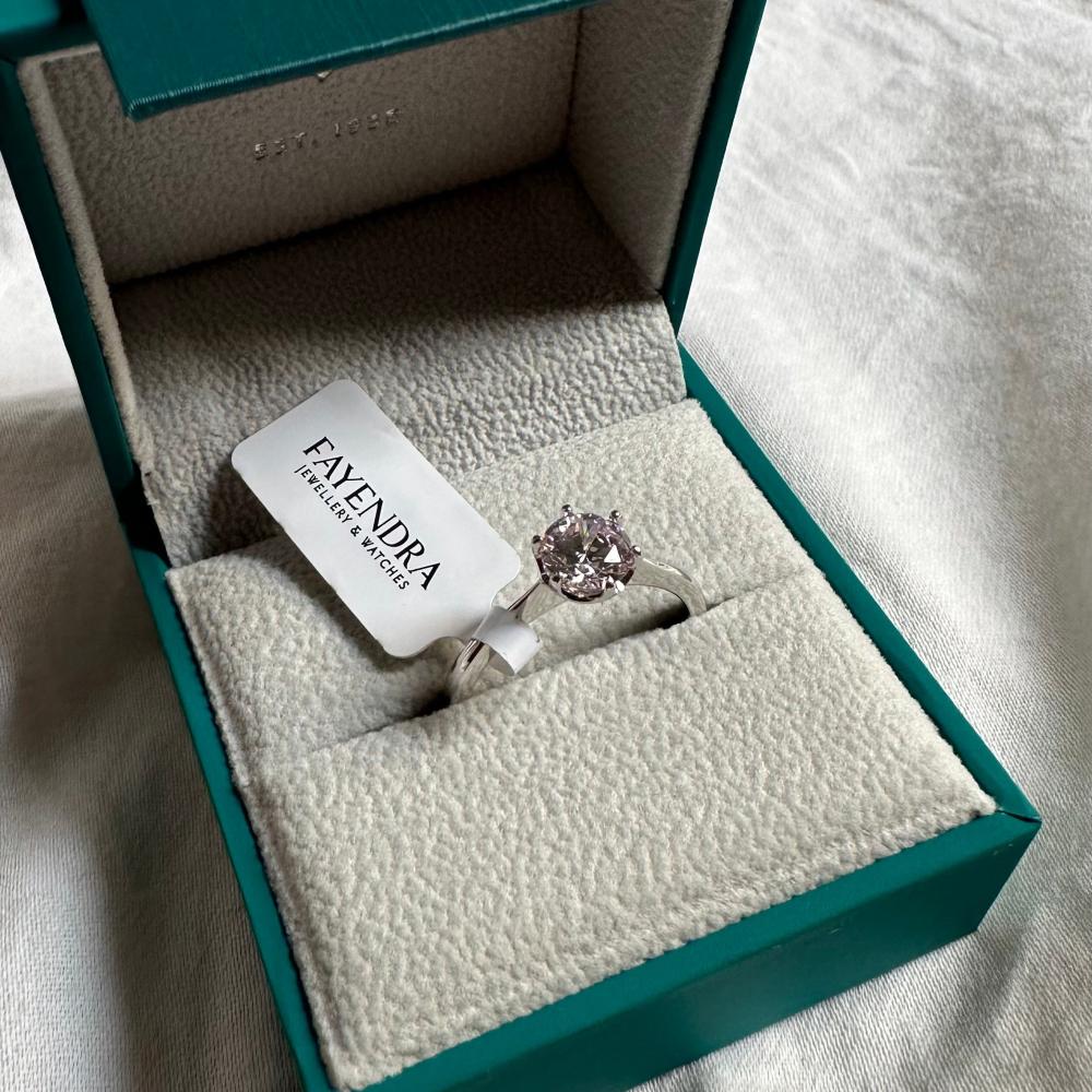 خاتم فضة زهري اللون من فايندرا مع جميع ملحقاتها كيس و كرت