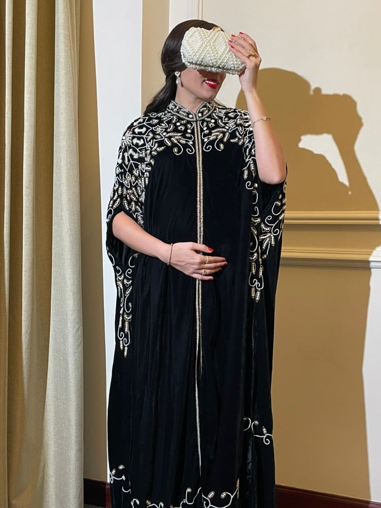 فستان حمل مخمل مع شك باللؤلؤ NH907