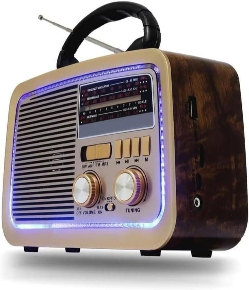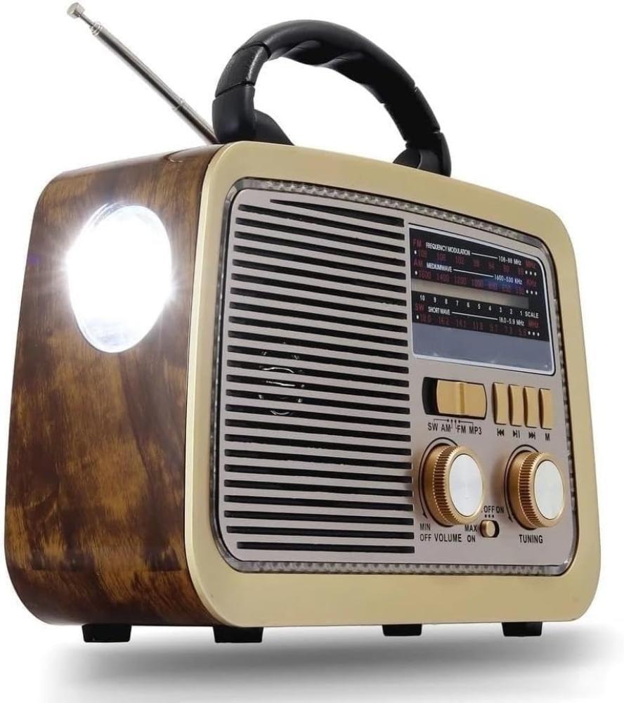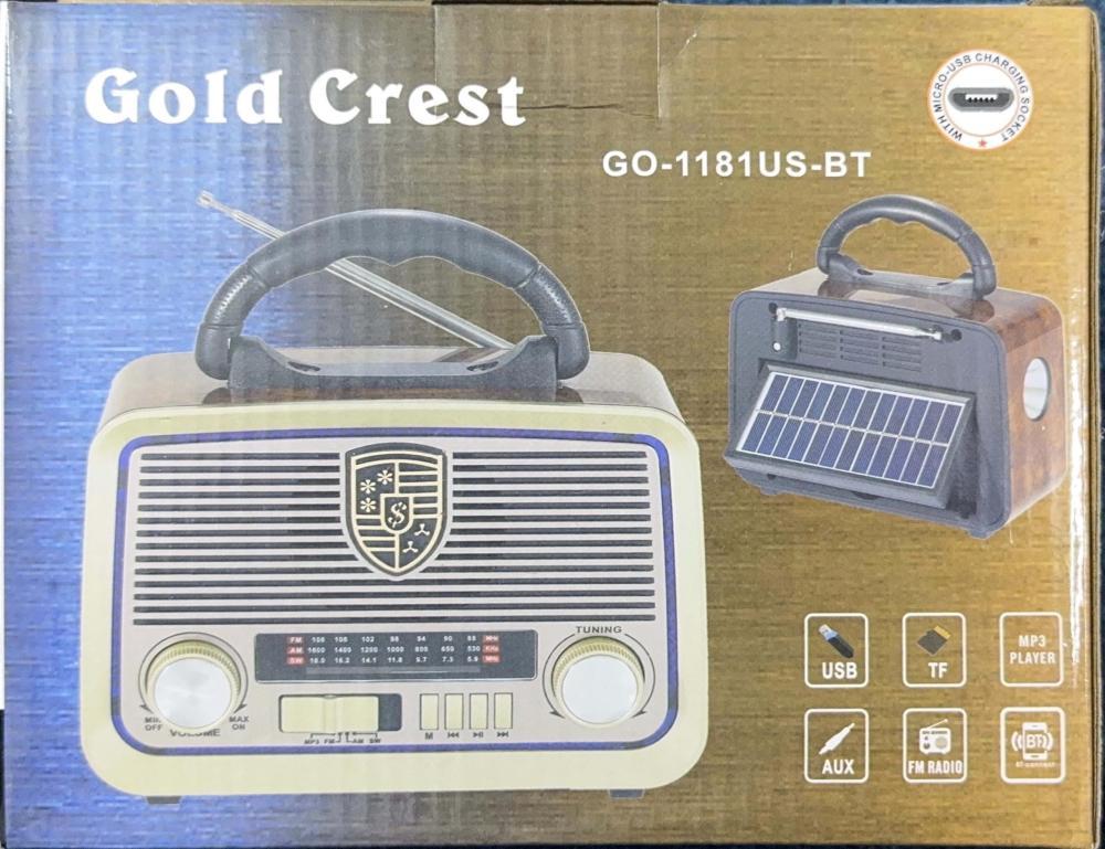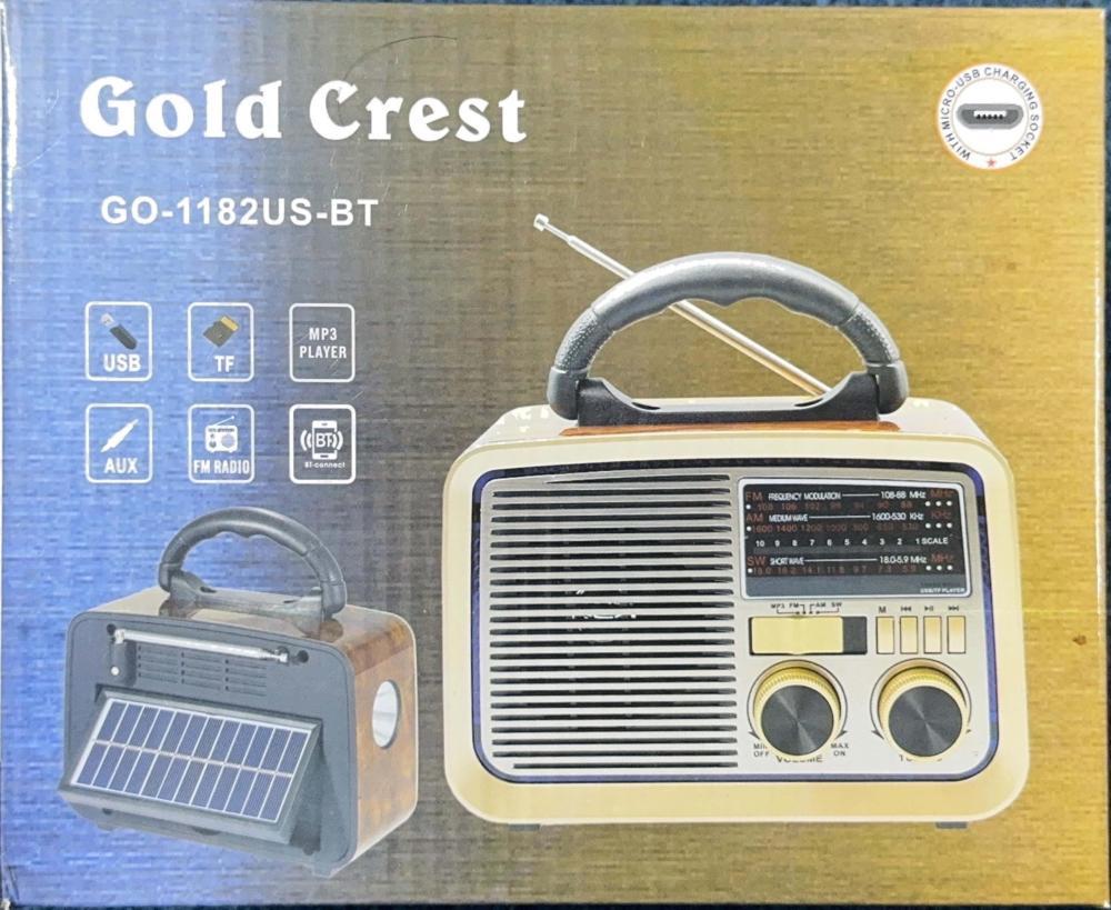 مكبر صوت راديو قديم من جولد كريست مزود بتقنية البلوتوث وتقنية هاي فاي مع ألواح شمسية وبطاقة ذاكرة ومنفذ USB ومنفذ AUX وراديو FM/AM/SW وخشب بني محمول وبطاقة TF وقرص فلاش USB وتشغيل AUX، GO-1182US-BT