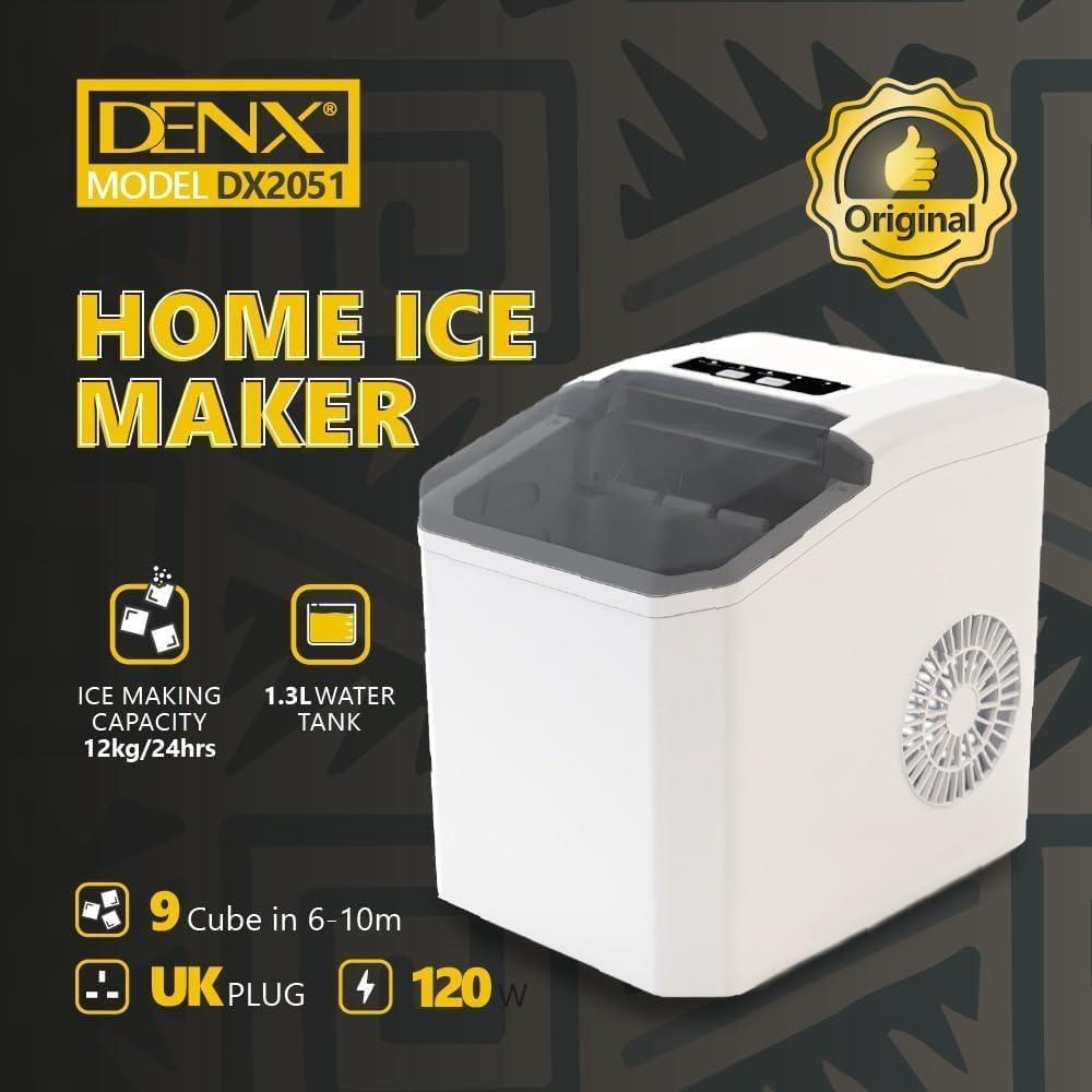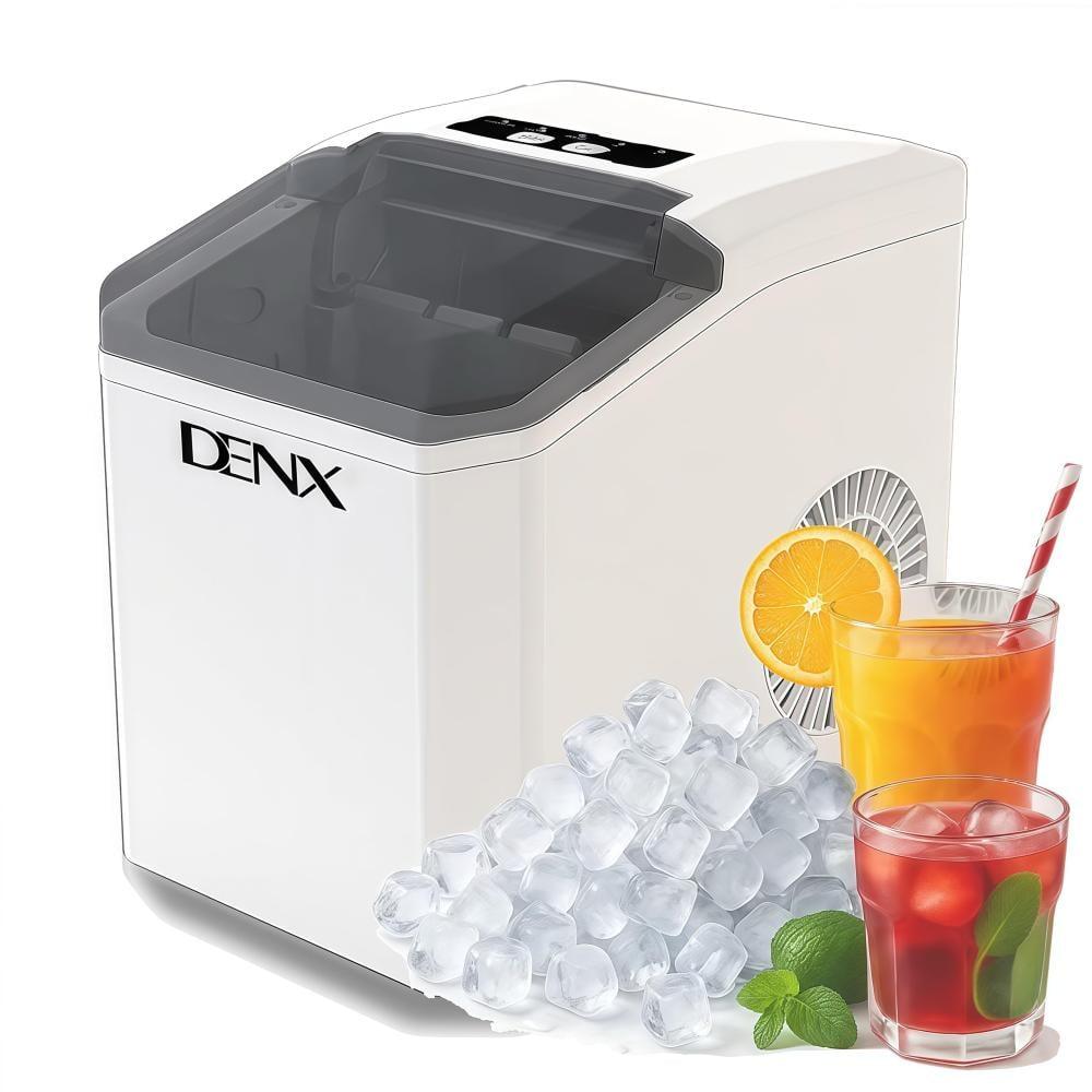 آلة صنع مكعبات الثلج DENX، آلة صنع مكعبات الثلج المحمولة للغاية، سعة 12 كجم/24 ساعة، 9 مكعبات ثلج في 6 دقائق، خزان سعة 1.3 لتر، سلة ثلج ومغرفة متضمنة، آلة صنع مكعبات الثلج للمنزل والمطبخ والمكتب، DX2051