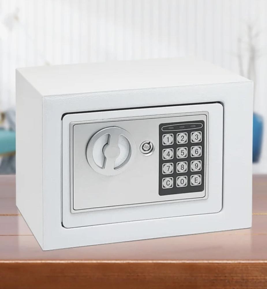 خزنة إلكترونية مدمجة مع نظام قفل مزدوج - تخزين آمن للأموال والمجوهرات والمستندات والاشياء الثمينة - صندوق أمان مقاوم للحريق ـ للمنزل أو المكتب أو الفندق.