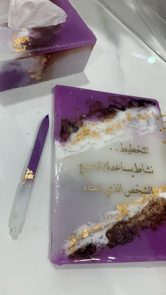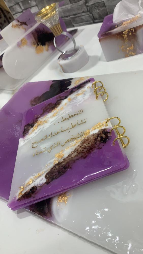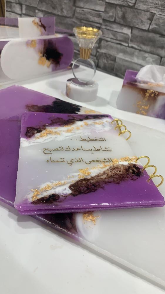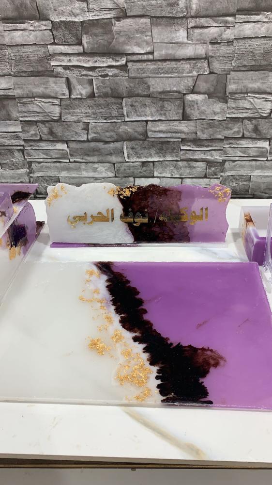 طقم مكتب بلون جميل ومميز البنفسجي والذهبي والابيض