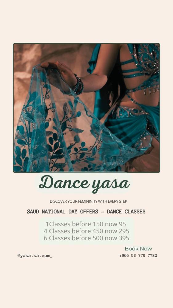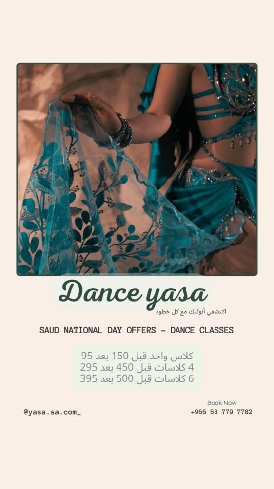 العرض متوفر فقط على باقات ودورات الرقص الشرقي المحددة ضمن عروض اليوم الوطني في Yasa Arts.