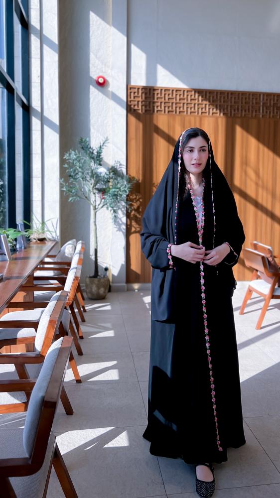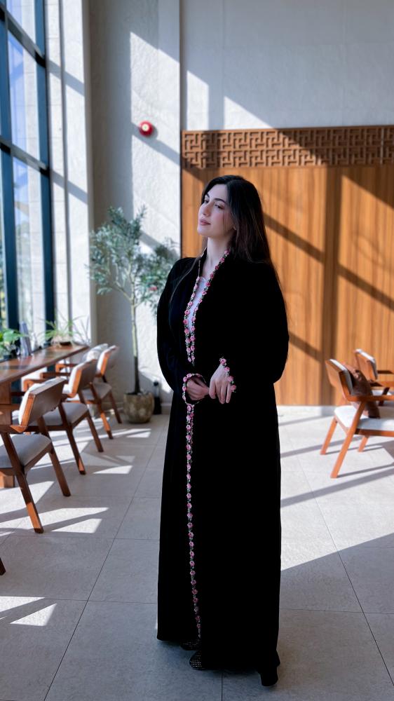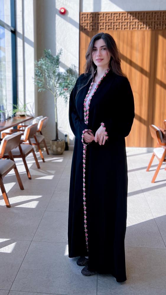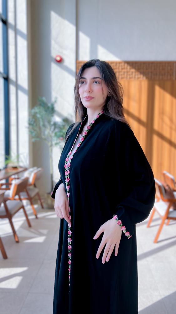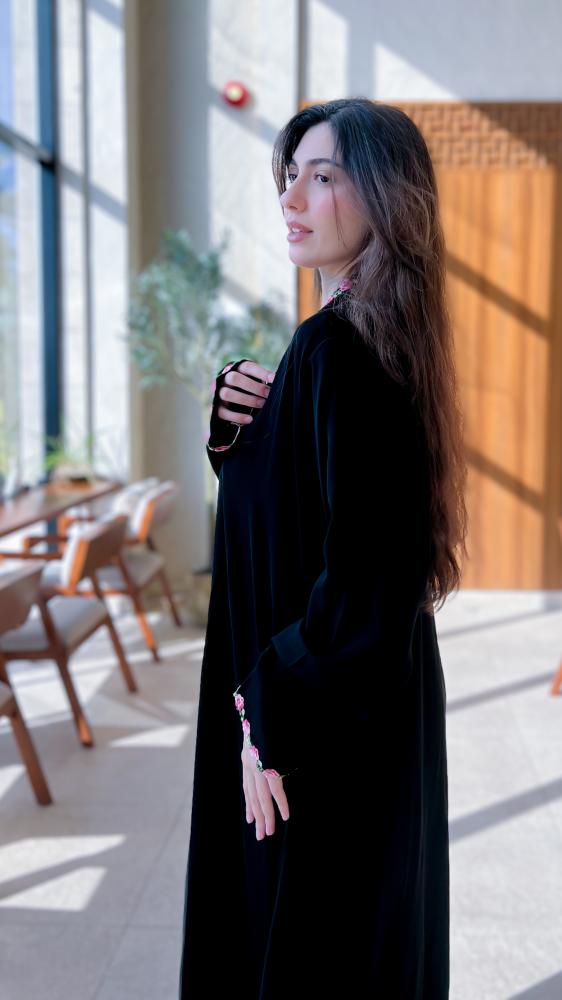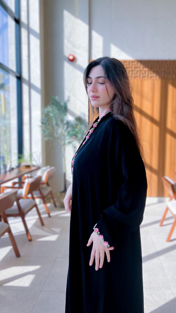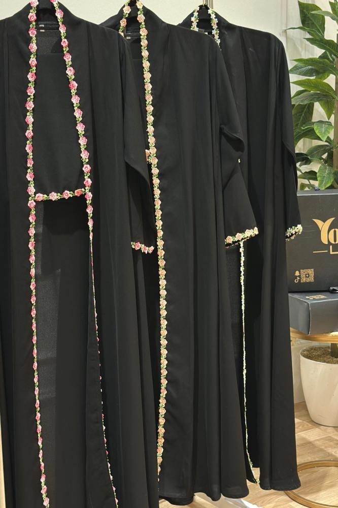 قماش العباية سواد الليل مع كلفة ورد