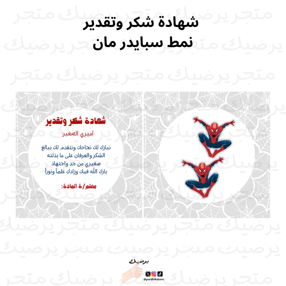شهادة شكر وتقدير نمط سبايدر مان