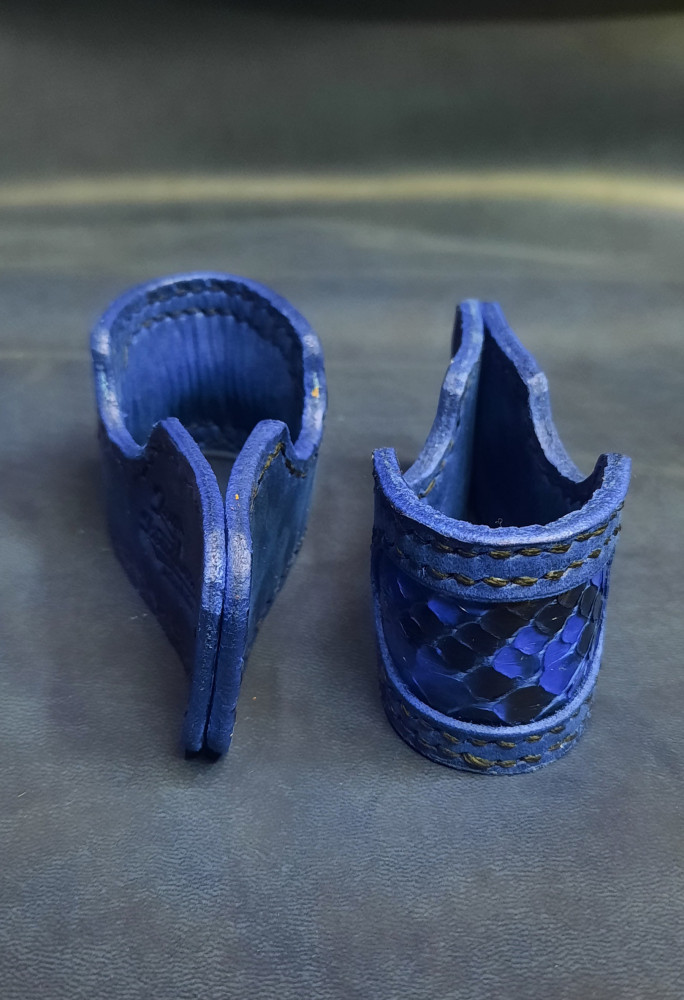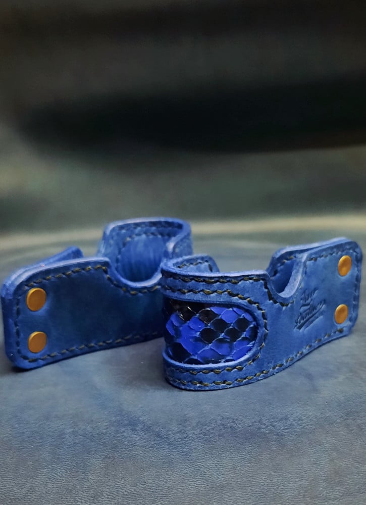 طبقتين من الجلد البقري المعتق المدبوغ بطريقه crazy horse مع لمسة من جلد البايثون الطبيعي لتعطي القطة المزيد من الفخامة والجمال .. تمت خياطتها يدويا بالكامل بخيط مغلف بشمع العسل ..