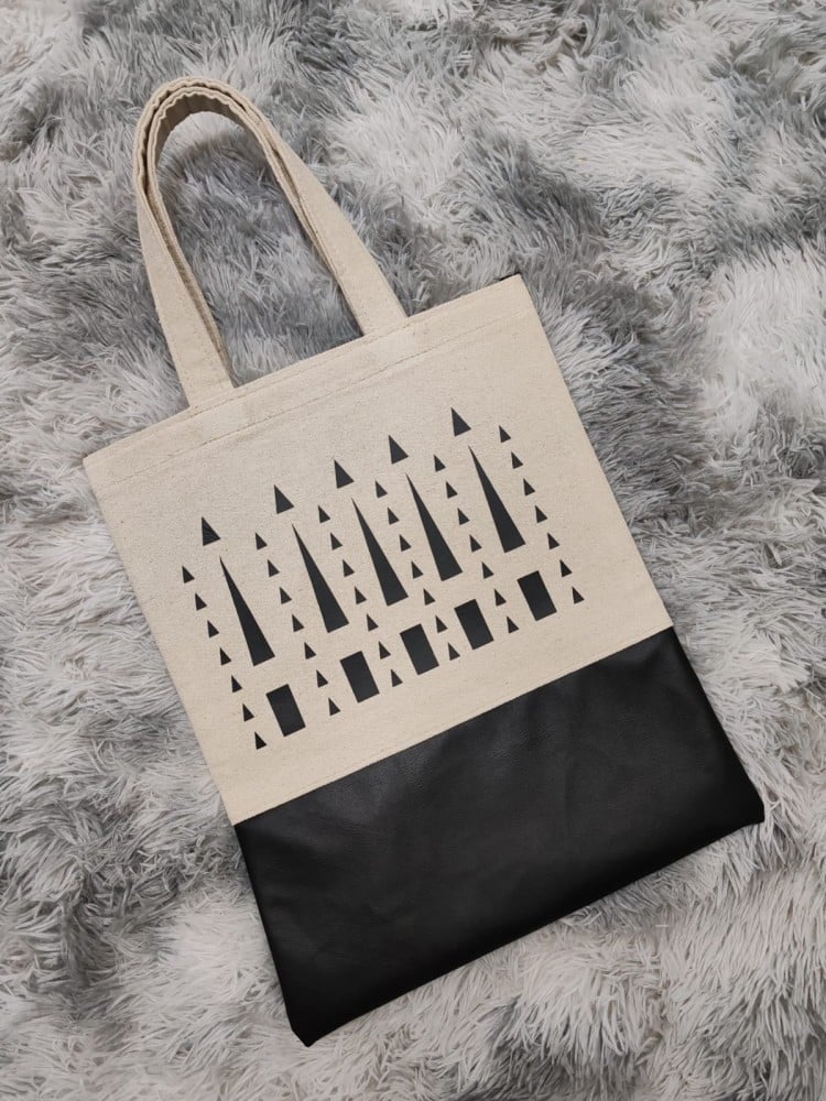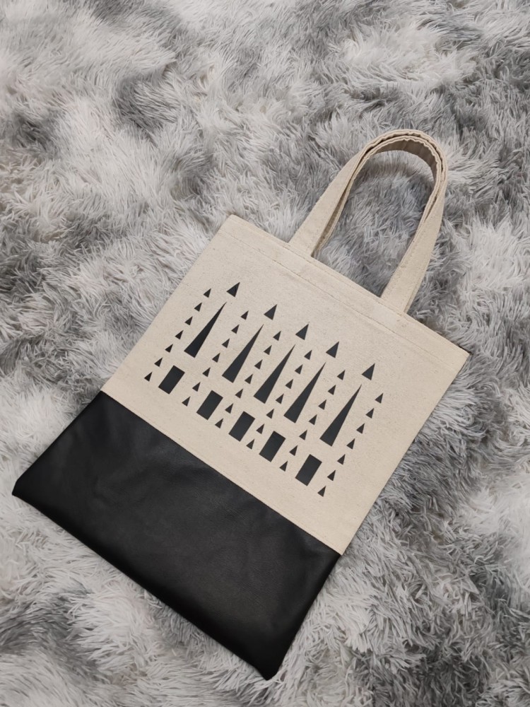 حقيبة tote bag الدرعيه..قماش كانفس خامه ثقيله. قاعده الحقيبة جلد صناعي ألماني. الطباعه فينيل حراري ثابت.