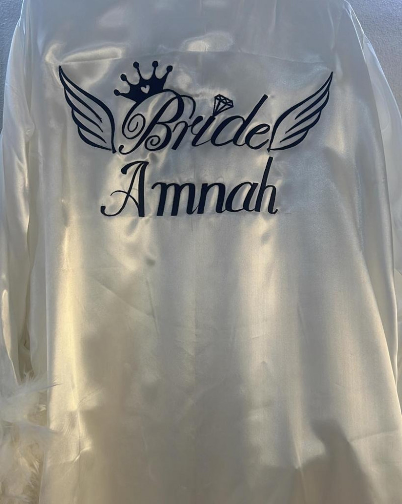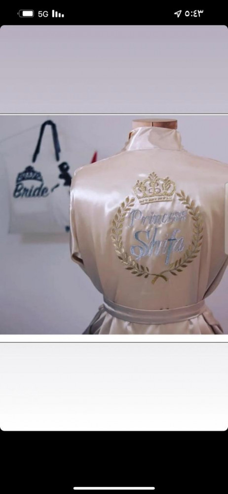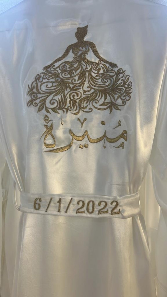 • روب ميك اب كم ريش دجاج مطرز ب الاسم حسب الطلب