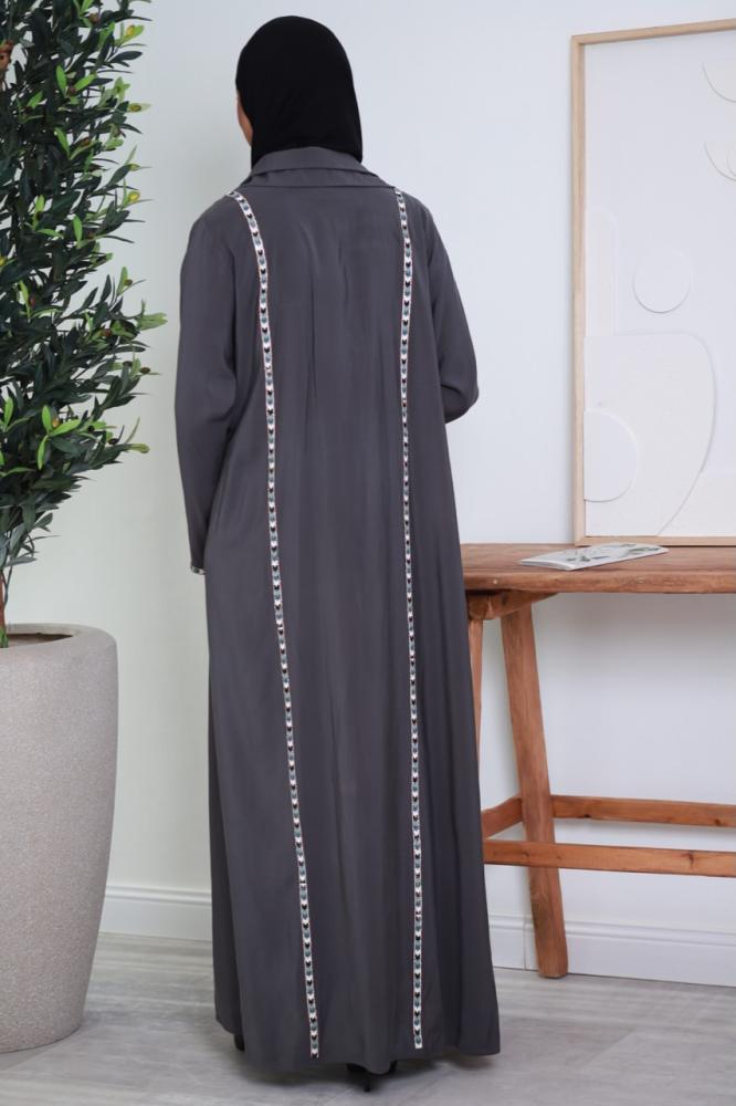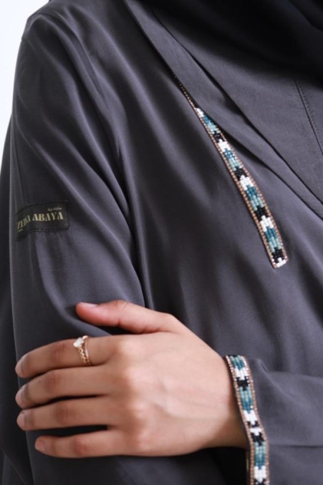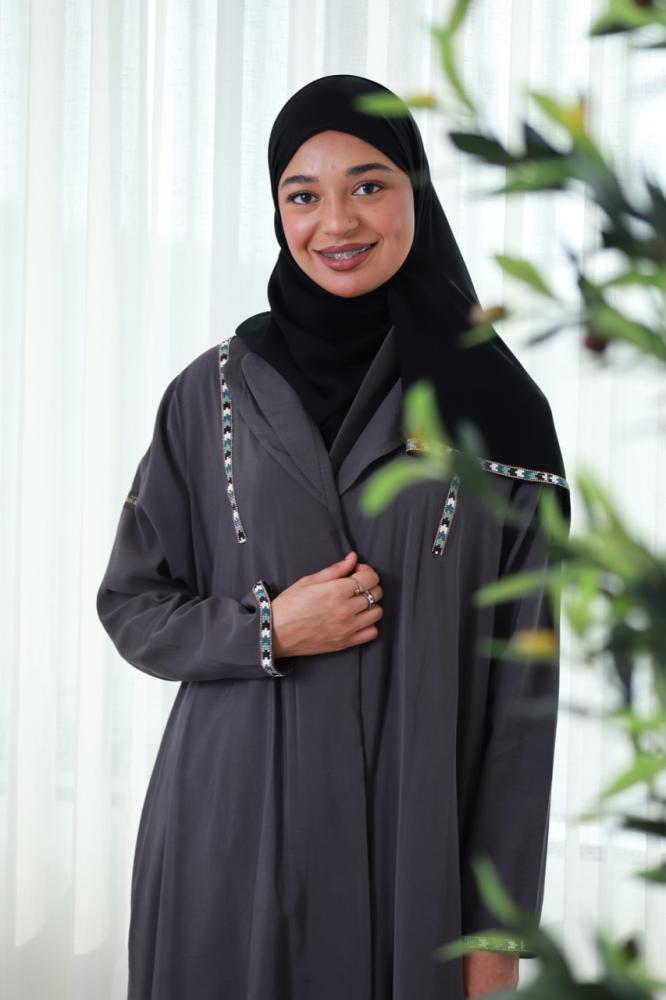 عباية رماديه بتصميم بسيط مميز وعملي . اختيار مثالي للسفر