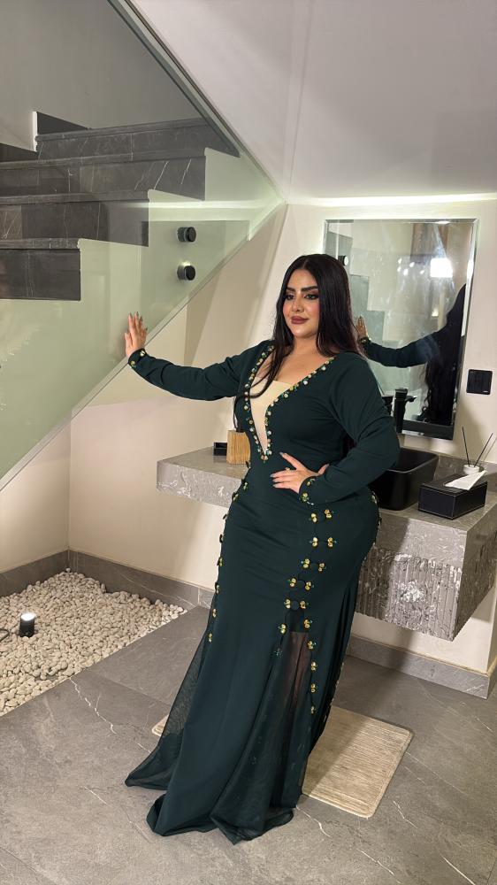 فستان كريب زيتي كريستال سوار فسكي اصلي