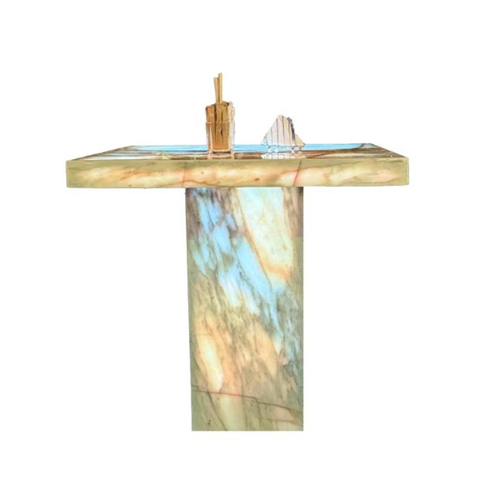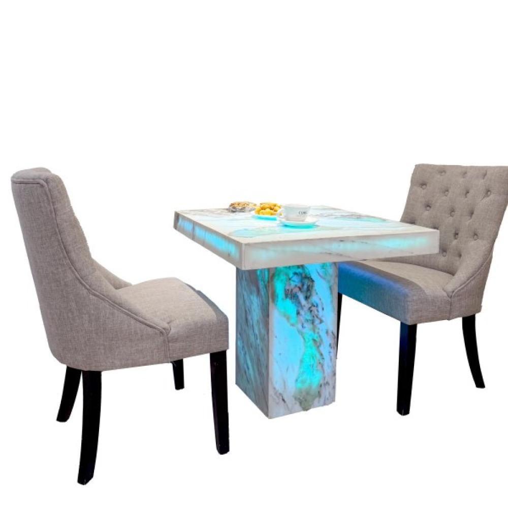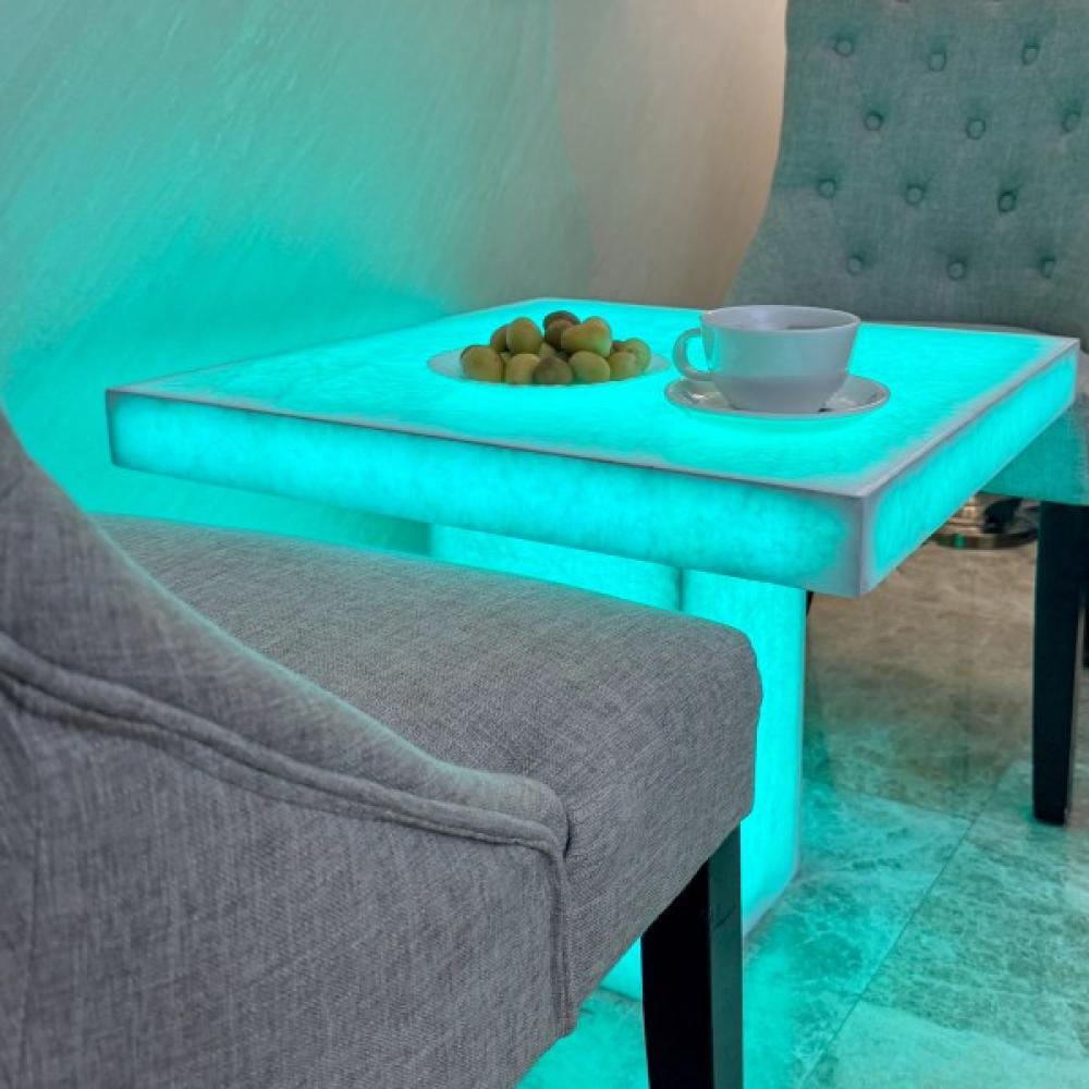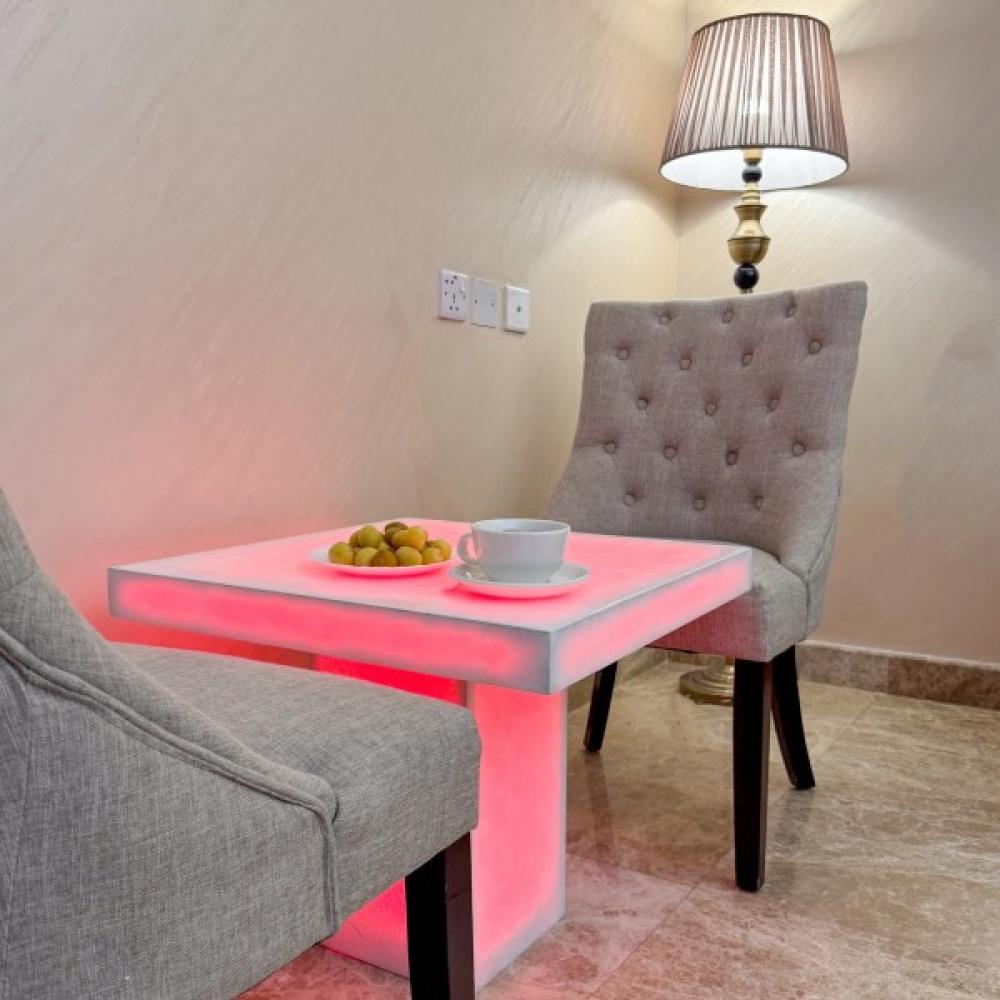 طاولة عصرية مصممة بإتقان باستخدام مواد طبيعية فاخرة قابلة لنافذ للضوء ، مناسبة للحفلات والمناسبات الخاصة والعامة وللإضافة جمالية للمكان في الصالة