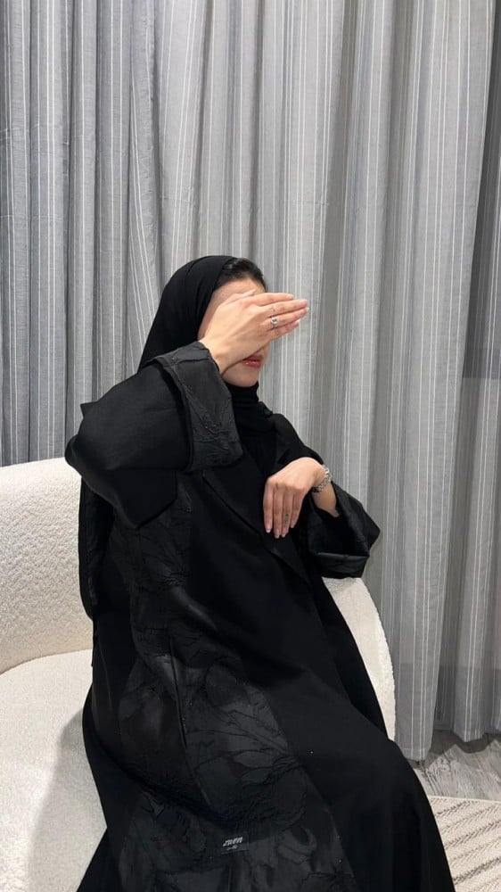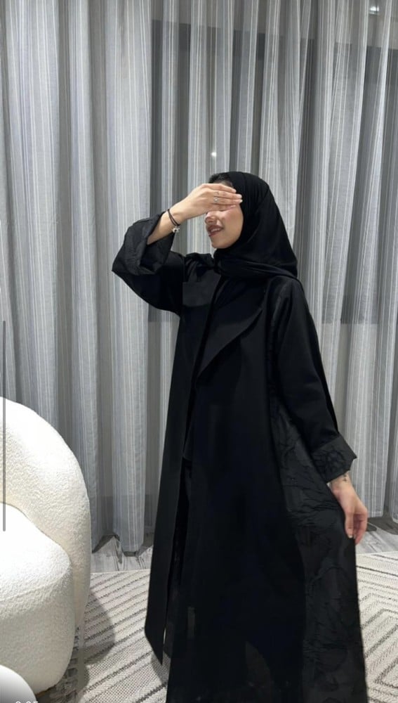 عبايه قماش كريب مع جاكار بنقش مميز مع شيله ساده